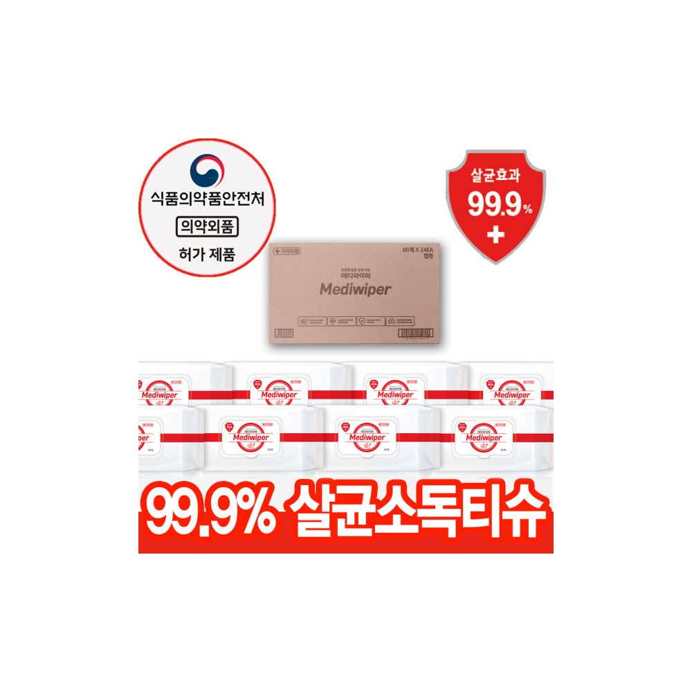 메디 무알콜 (손)소독티슈 24팩(1박스/80매/1팩) 살균