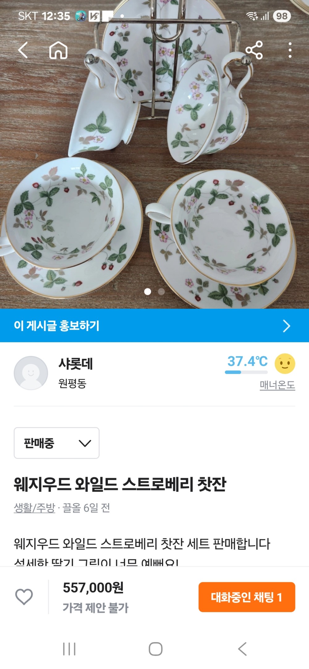 웨지우드 찻잔세트 > 중고기타물품