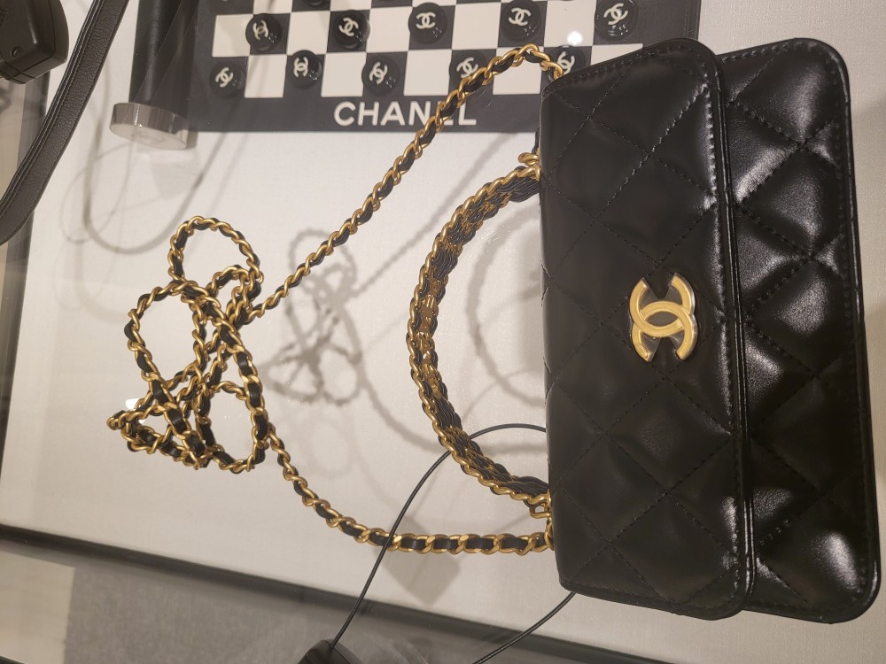 정품 샤넬백 23P 체인 탑핸들 플랩 폰 홀더 미니