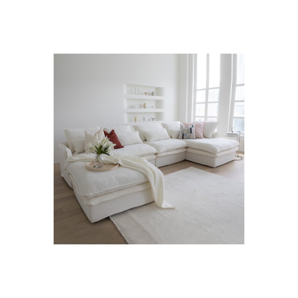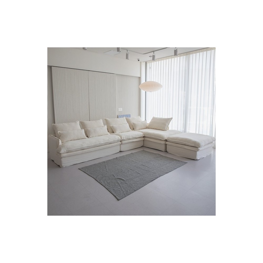듀커 DK032 4인 카우치 풀커버 린넨 구스다운 패브릭 소파 + 오토만 > 가구/인테리어