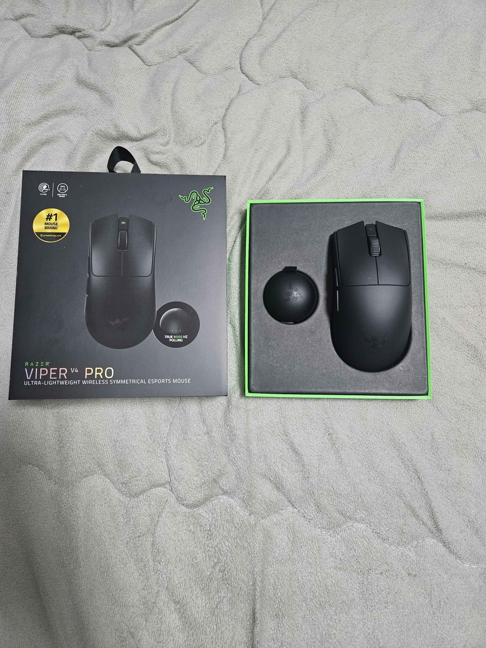 레이저 바이퍼 V4 PRO 판매합니다. 박스와 구성품 모두 포함되어 있고, 배송 오자마자 언박싱 하긴 했는데 마우스 사이즈가 손에 비해 좀 커서 거래 합니다. 사용한 시간은 대략 2시간 정도로 상태 매우 양호 합니다.
